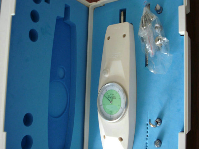 | 表盤推拉測力儀質量 質量就是效益。質量是提高企業效益的保證。 指針式推拉力計 HF指針式推拉力計是小型簡便的推力、拉力測試儀器.具有高精度、易操作及攜帶方便之優點,而且有一個峰值 切換操作旋鈕,可做荷重峰值指示及連續荷重值指示。適用于電子電器、輕工紡織、建筑五金、打火機及點火裝 置、消防器材、制筆、制鎖、漁具、動力機械、科研機構等行業推拉負荷測試。是代替管形推拉力計的新一代產品。 手持設計,體積小巧,操作簡單,并可結合各種夾具使用; 指針指示,讀數方便,測試精確度高;峰值保持功能和連續荷重指示自由切換; 牛頓和公斤兩種單位(單位可定制〕同時顯示,無須單位換算;獨有公差帶指示 器裝置(實用新型專利:Z1200520074355.1)保修壹年,終身維護。 指針式推拉力計SKN系列可測試較大負荷的推力、拉力測試儀器。具有高精度、易操作之優點,做荷重峰值指示及連續荷重值指示。適用于電子電器、輕工紡織、建筑門窗、五金器材、 鎖、漁具、動力機械、科研機構等行業推拉負荷測試。 指針指示,讀數方便;操作簡單,并可結合背板安裝各種測試機架及夾具使用;峰 值保持功能和連續荷重指示自由切換;牛頓和公斤兩種單位(單位可定做〕同時顯 示,無須單位換算二專利設計,專利號:Z1200520074355.1. 表盤推拉測力儀質量 ≌≌售后服務≌≌ ⑴消費者在購買使用本廠產品一年內,在正常合理使用的情況下出現質量問題時,可就近到銷售點要求修理、換貨或退貨。特定保用項目在保用期內發現質量問題者,可要求換貨或退貨,但必須是合理正常使用的條件下。 ⑵消費者在取得上一項服務不方便時, 可直接來函或來電向我廠反映情況、提出要求,或將產品寄來我廠處理,本廠將以認真的態度作出合理的處置。 ⑶如因消費者使用不當損壞時,只要如實反映情況,并可以修復者,本廠將提供滿意服務,不收或少收工本費。此類情況必須與廠直接聯系。